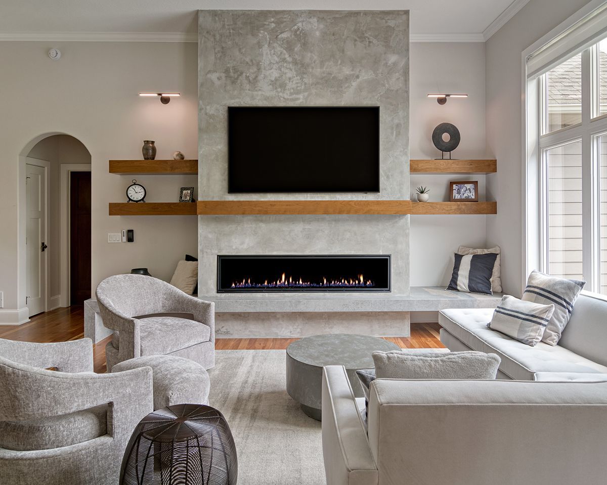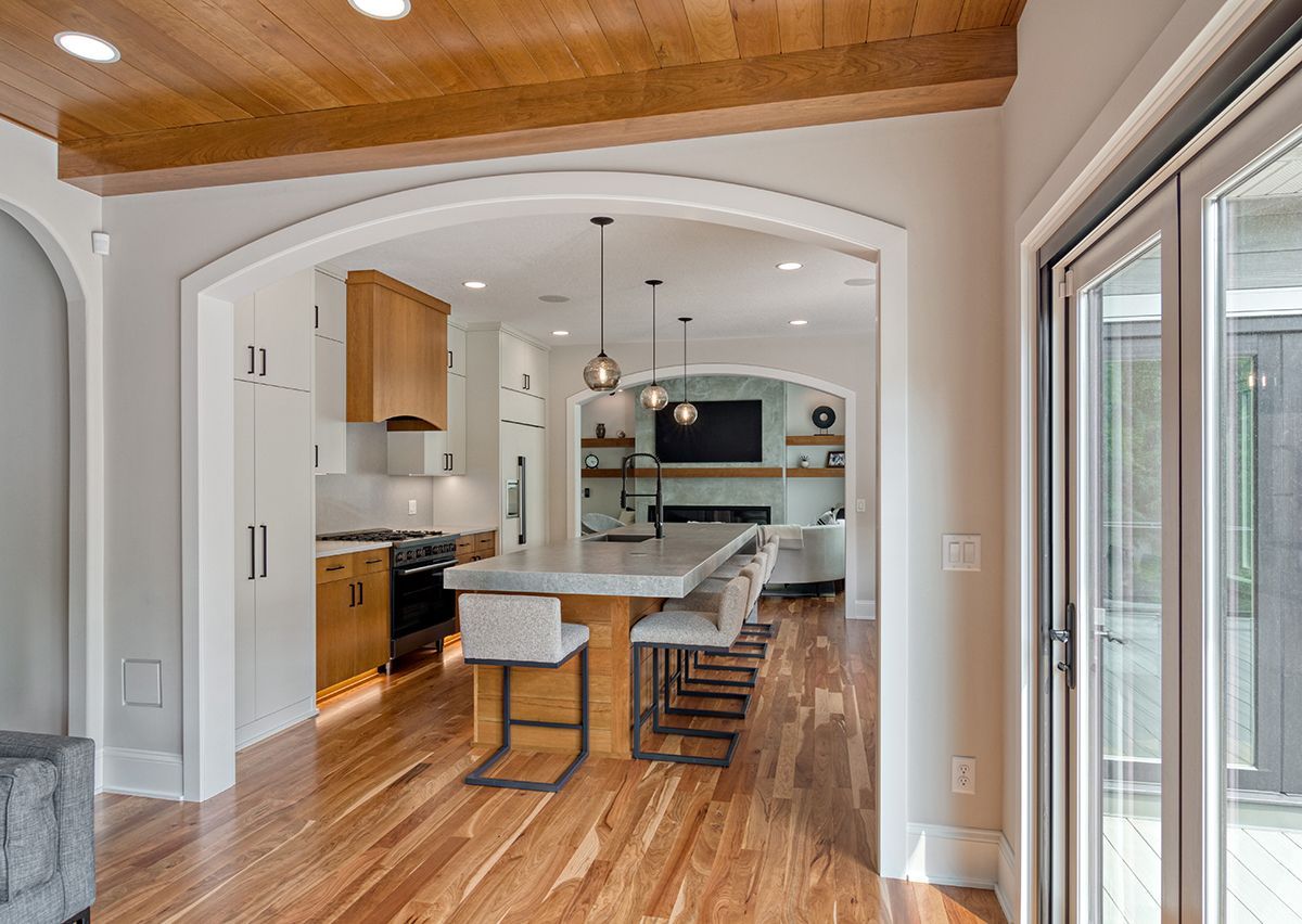 Dercon Construction transformed this Minnetonka home with a complete renovation that blends modern functionality and timeless craftsmanship. The project includes a main-level kitchen remodel, a new seating area with a cherry shiplap ceiling and 12-foot Marvin bifold patio door, a second-story addition with a bedroom and gym, and an expansive outdoor deck. A sleek concrete-plastered fireplace and warm cherry finishes tie the spaces together, creating a cohesive, elevated living experience that reflects Dercon Construction’s commitment to quality design and refined modern living.
